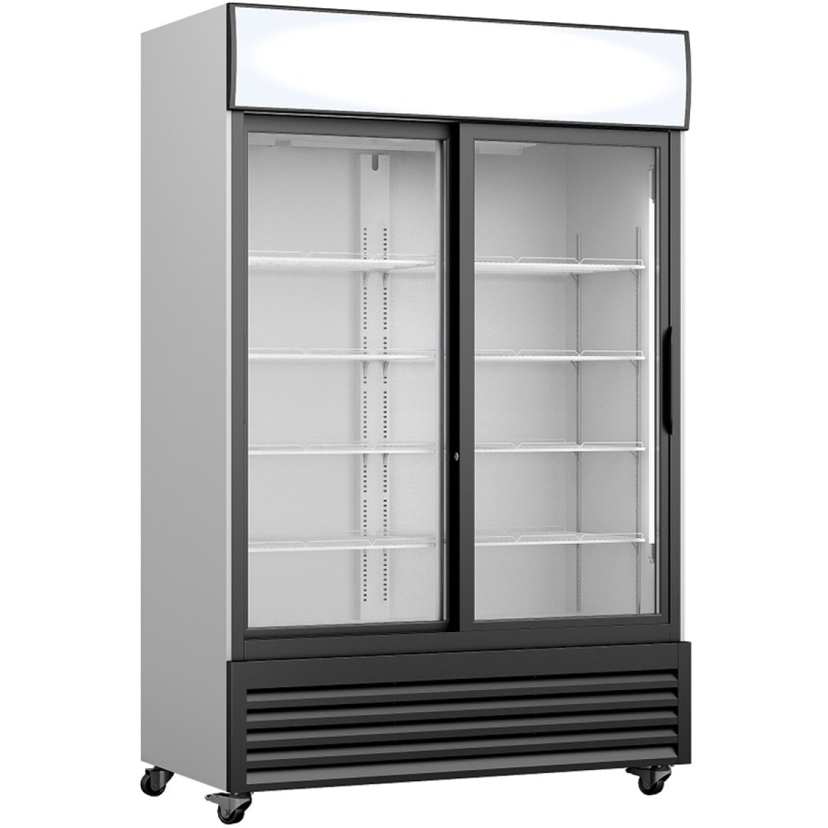 Commercial Twin Bottle cooler Upright 730 litres Fan assisted cooling Sliding glass doors Black&White | Adexa GDR555